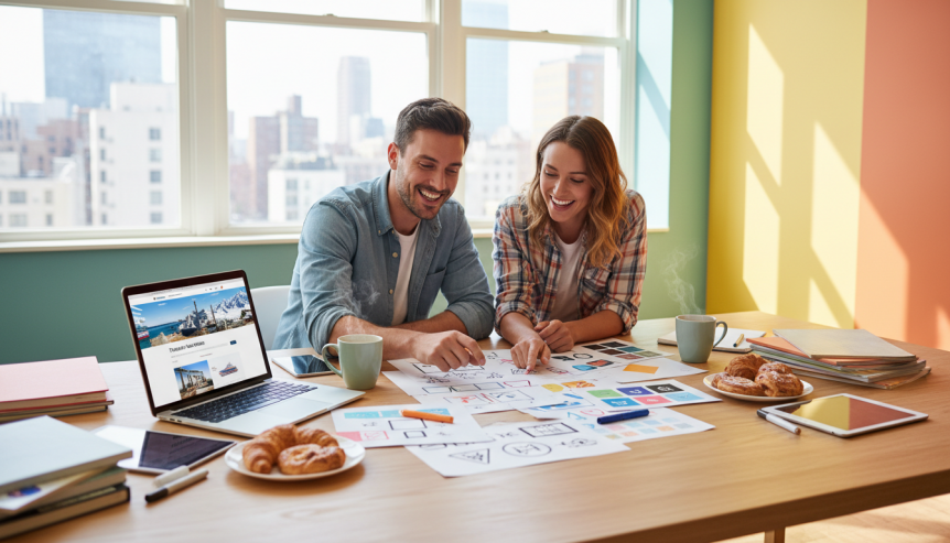 A client and Graphic Designer working on their brand identity